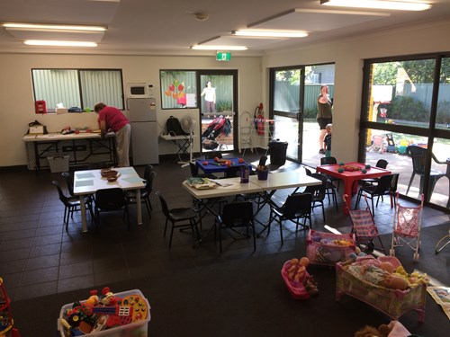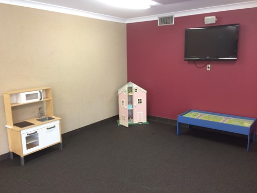 A large tiled area with some carpeted covering is available around the back of the church, with great access to a children's playground. You may bring your own jumping castle and BBQ outside the room. Perfect for kids' birthday party, playgroup and family gathering.